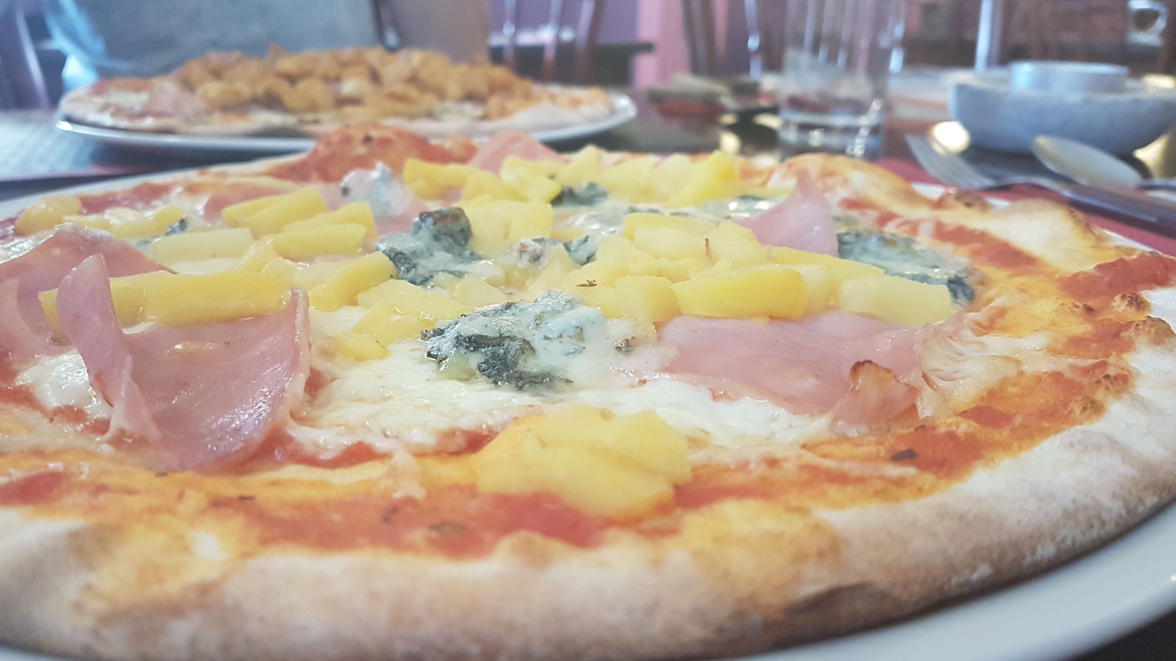 I think its delicious! This was a pizza with ham, cheese, gorgonzola and pineapple. Or what we call in dutch "ananas".