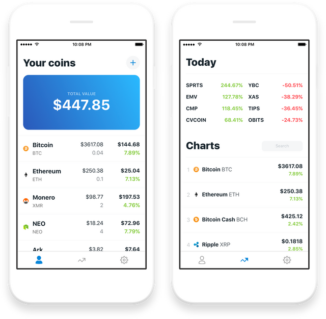 And Coinfolix is the best option out there. It's clean, lightweight, and intuitive to use. You can enable passcode protection, if you want. Most of all, it's simple - you get two screens: