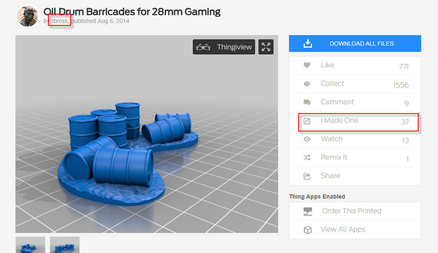 You can see there is a many things I can print if interested. The good thing about this is also that these small objects doesn't take forever to print. The Oil Drum Barricades is made by "rbross" and most likely he has also made more of the same type, aka 28 mm objects.