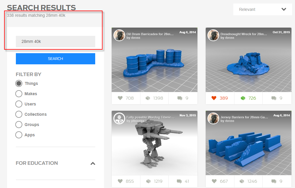 As you can see, there are quite a few readily available designs you can pick up. Also, I am mostly interested in 40k Wargames, so refine my search further: