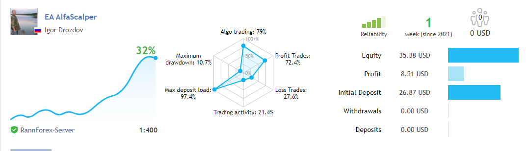 ✅ For 1 week of work, the AlfaScalper project earned 31.67%