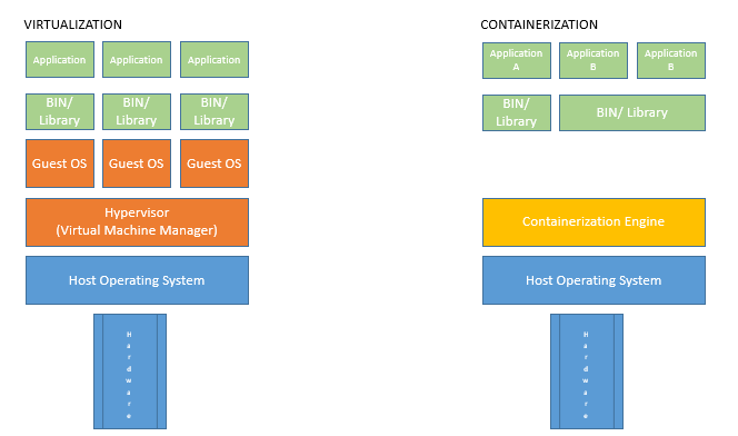 As you can see in the picture above: Under the use of Containerisation, we still need some kind of software, that delegates the resources and requests of the separated processes to the hsot OS, but we no longer need to simulate several guest operating systems.