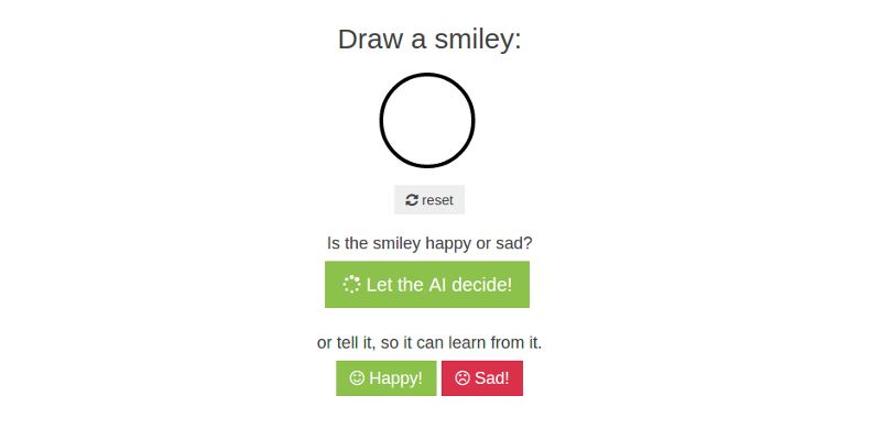 I am a software developer and I am fascinated by AI. So I started to learn about neural networks and play around with it. As I was mostly concerned with building websites over the last few years, I looked for an implementation that runs on a webserver and so recently I built a little website that recognizes self drawn smileys. It looked like this: