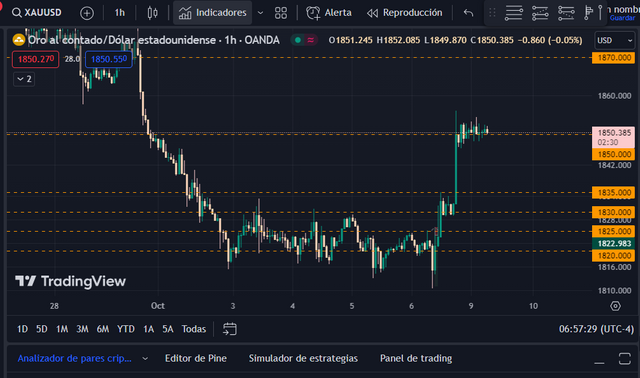 Just yesterday, when the Asian market opened, which is the first one to open, I noticed something interesting in the price of gold, whose price had been falling for a few weeks until it reached 1810 dollars last week, but just at the opening yesterday in less than 5 minutes it went from 1830 dollars to 1853 dollars, quickly.