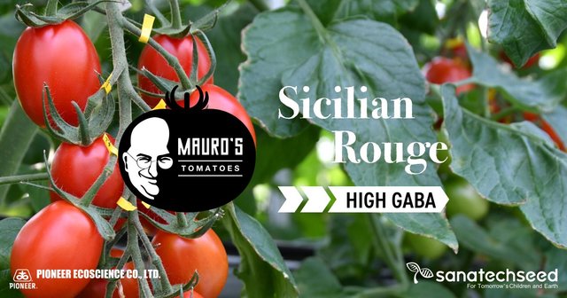 Después de seleccionar y cruzar varias plantas para eliminar restos de genes del proceso esta nueva ya no es transgénica pues solo tiene una mutación en un gen que podría haberse producido de forma natural, esta nueva variedad de tomate será comercializada con el nombre de Sicilian Rouge High GABA por la empresa japonesa SanaTechSeed.