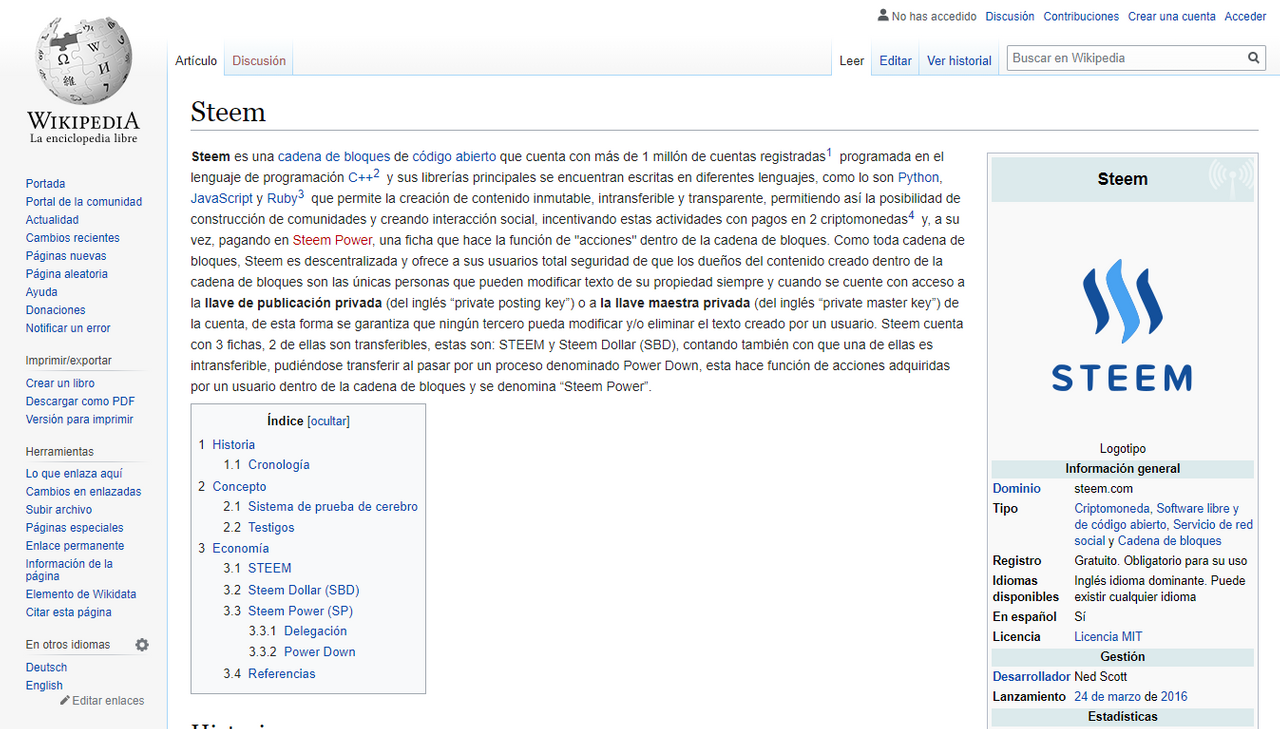 Previously I did an article on Wikipedia talking about Steem, it has very good information and is perfect to use to promote Steem in Spanish, if you want to take a look at the article, here I leave it: https://es.wikipedia.org/wiki/Steem