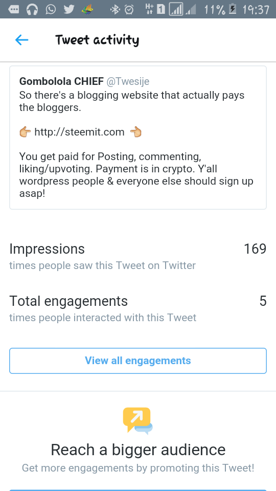 I’ll start with the basics. Whatsapp. Getting the information out to my closest circle of people. My contacts. An inevitable 30 views in less than 24 hours. I think they got it.