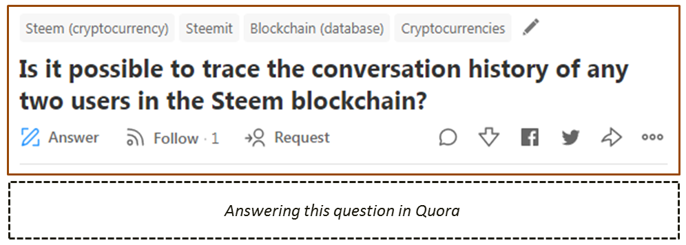Is it possible to trace the conversation history of any two users in the Steem blockchain? Answering in Quora.