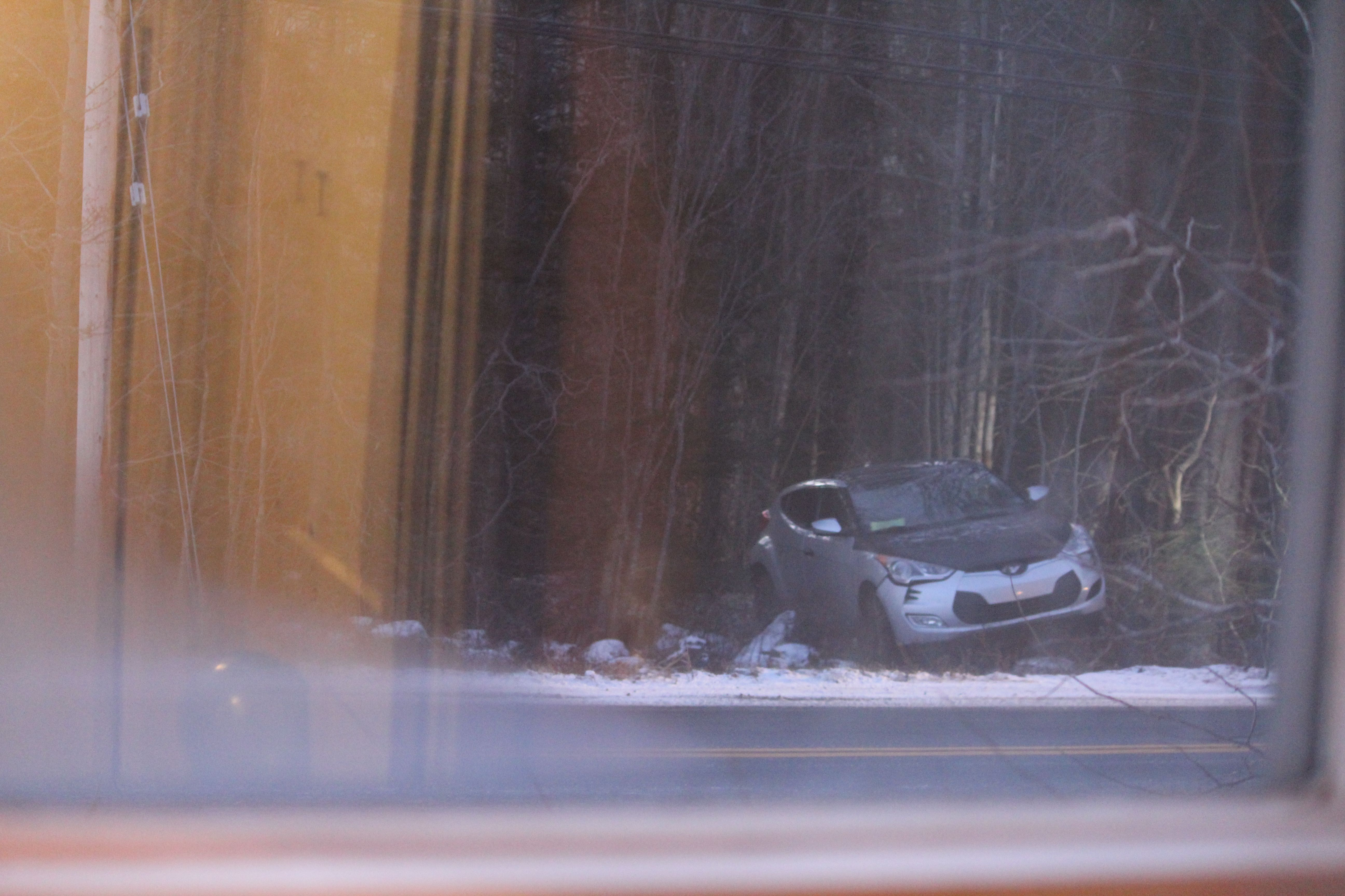 So we live right on the highway and our house is pretty close to the road. It's only about twenty fight from the edge. Last night I went to bed and I had a weird dream that a truck drove into our house. I didn't pay any attention to it because the plow trucks were going by last night before bed and were ridiculously loud. Our oldest son beats me out of the house in the morning quite often because I stay up to late on Steemit, a lot. He opens the front door to leave and then comes right back in a says there is a car in the ditch directly across the street from our house. Wow! So crazy indeed.