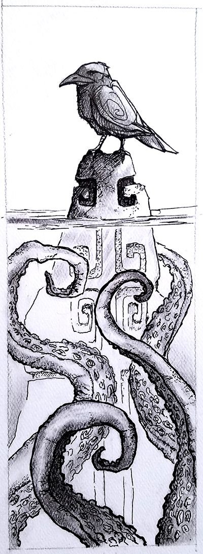 I'm hooked just from the crow and octopus drawing! The art style is amazing and very atmospheric :)