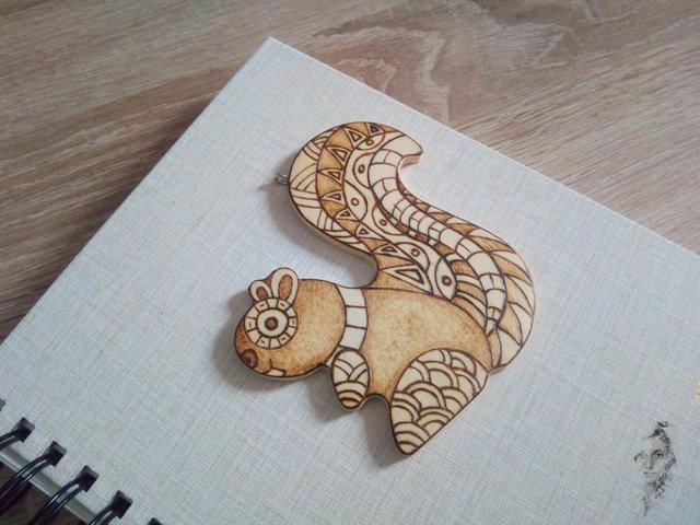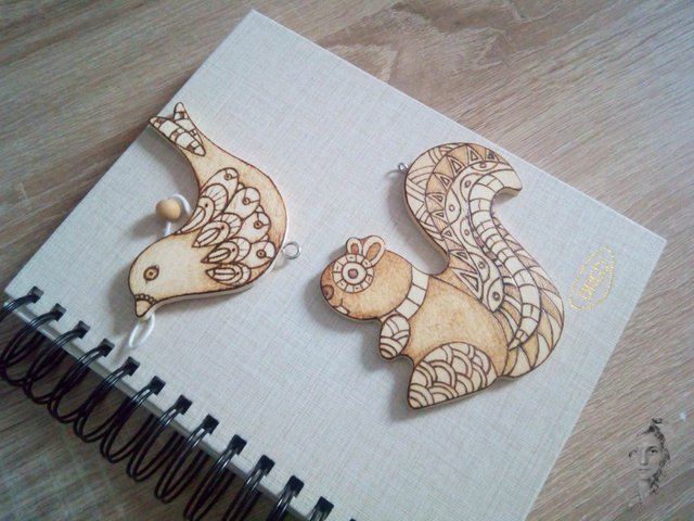 I started this project a while back; a new project that includes wooden animals, with wood burned drawings in a mandala style.