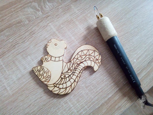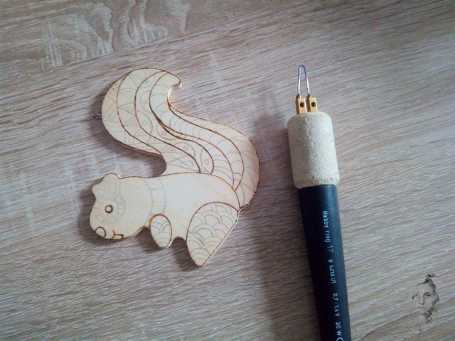 I bought this wooden squirrel at a craft store and as usual, I am using my Brenn Peter pyrography pen, at a temperature of 300-400 degrees Celsius. I used a higher temperature for the darker areas. As for the tips of the pen, you can see them below.