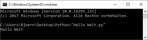 Die print Funktion schreibt den Ihr übergebenen Parameter in die Python Console, in unserem Fall ist dieses der Text "Hallo Welt".