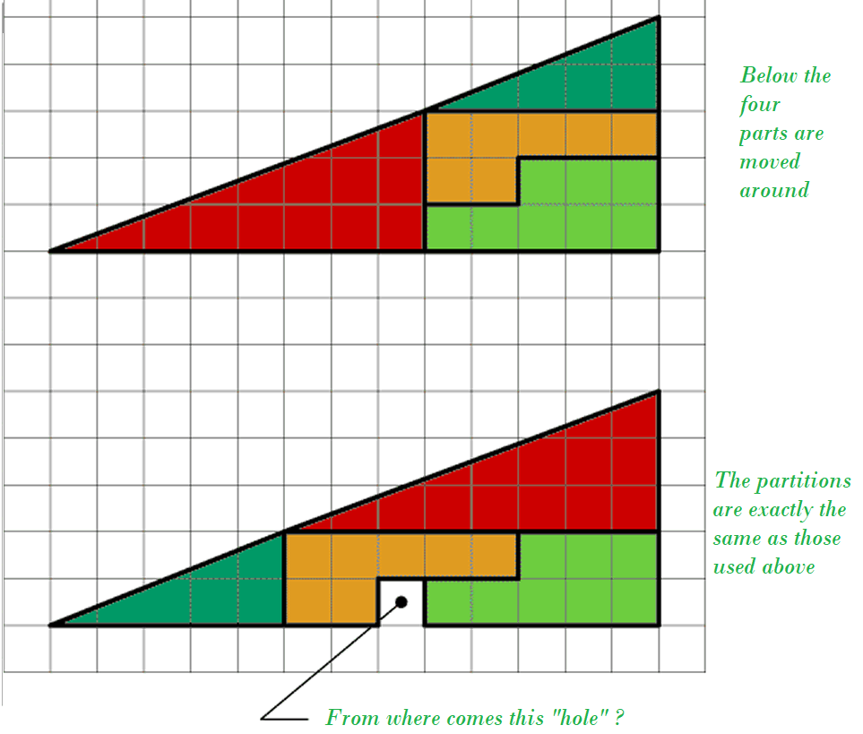 Upper side of the triangle is concaved equal to one square.