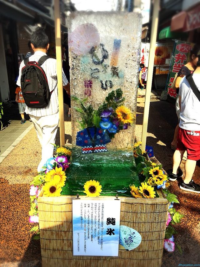 At some shopping streets, there are blocks of ice to help cool down the surroundings. Take advantage of these ice blocks to at least cool your hands. (But no licking of the ice blocks please....). This particular pretty ice block is found in Yanaka Ginza