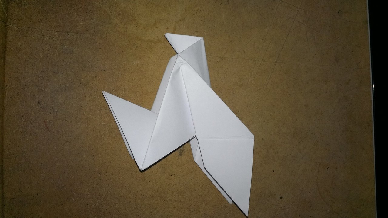 Ideally, do it with a square of paper of about 15 cm, but I only got one about 23 cm so I'll just make a big ass bird