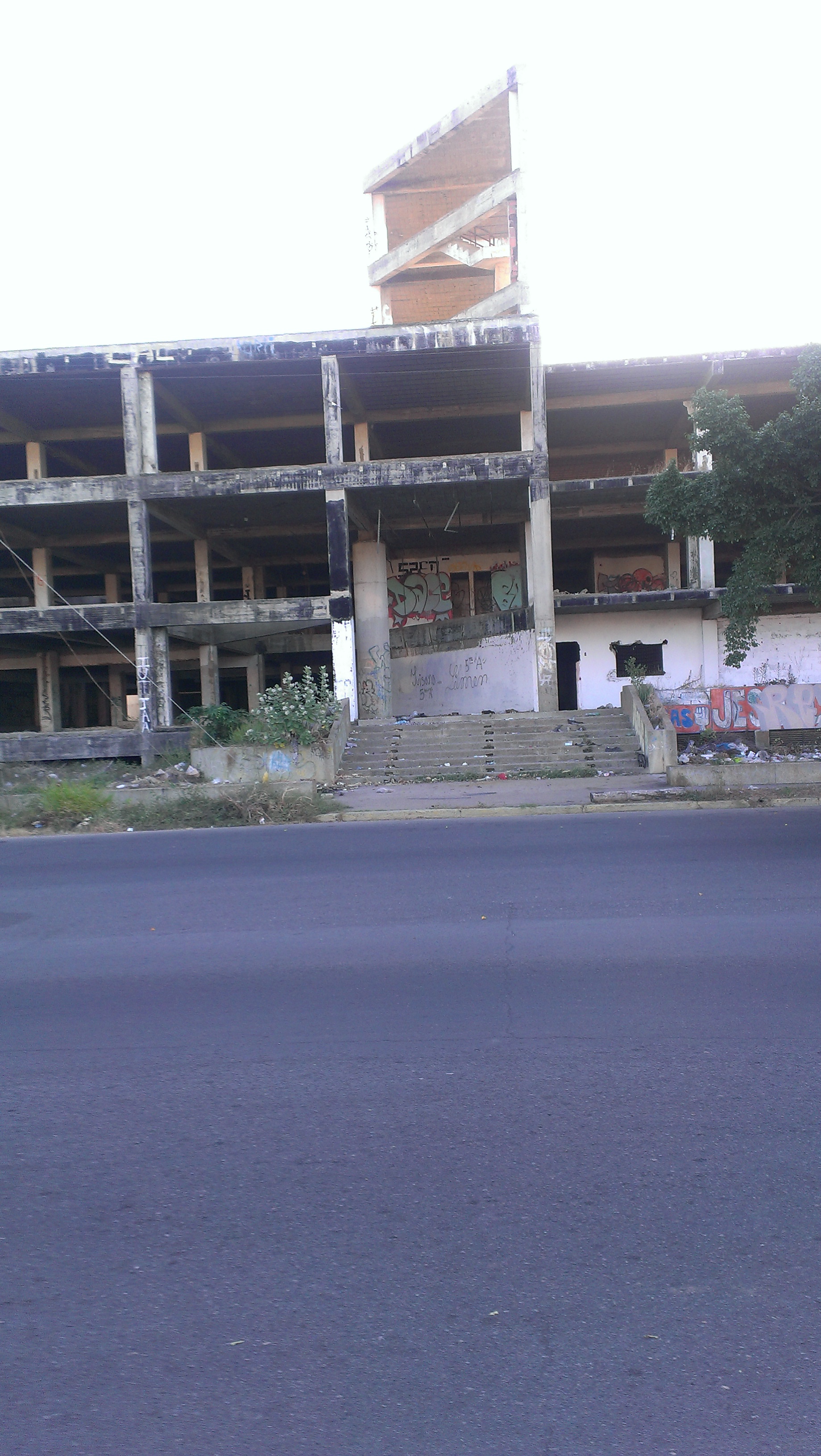 What a disaster, but to get to the park we have to pass in front of this abandoned building, it must be scary at night, we better hurry.
