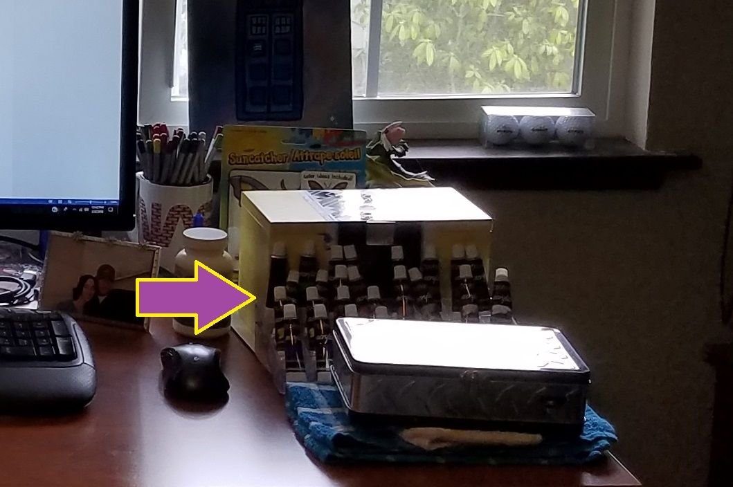 Here's a quick example of some organization I did. My acrylic paints needed a better home than jumbled in a box together. I picked up 2 clear plastic organizer bins at the Dollar Store and it worked perfectly to hold all my colors so I can easily see what I've got.