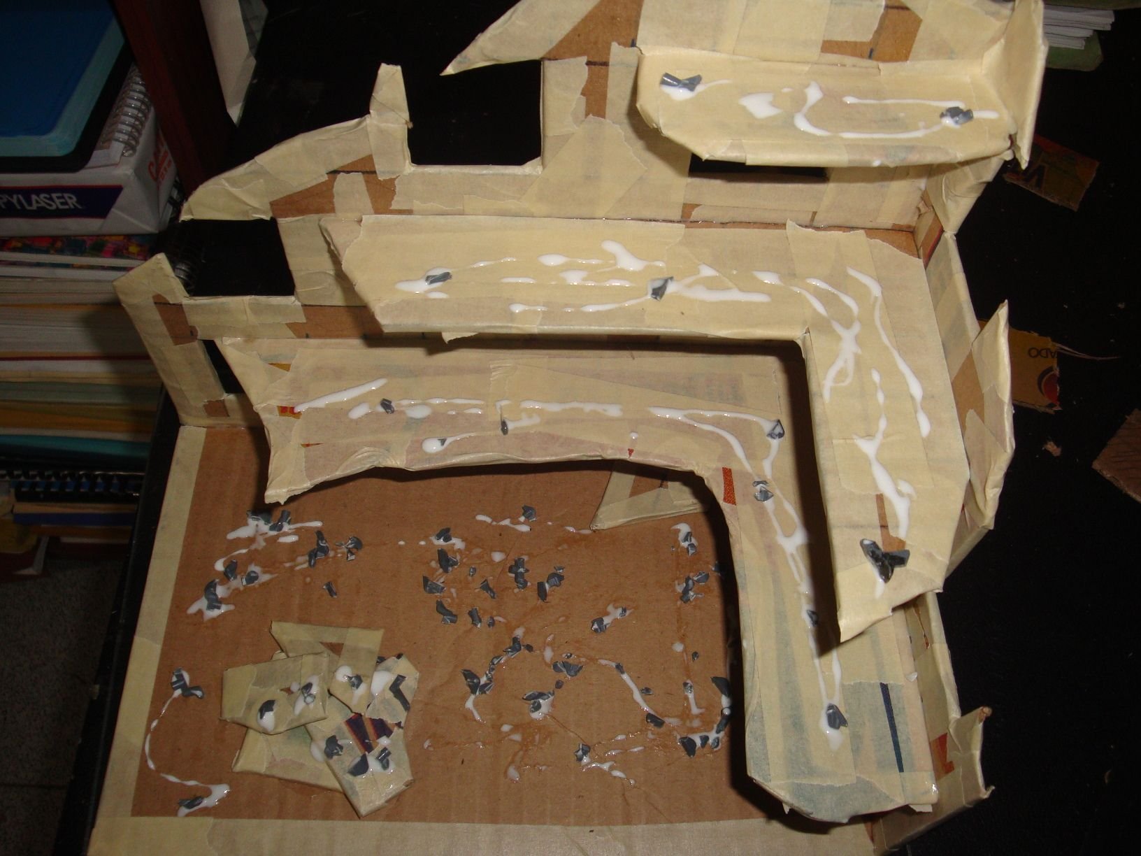 Add details, for them I use more cardboard and some pieces of plastic from the miniatures