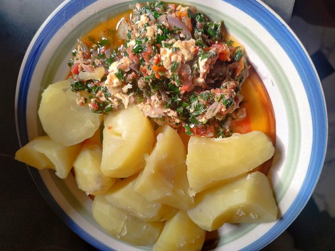 | Nigerian's Specialty: Potatoes and Egg Sauce |