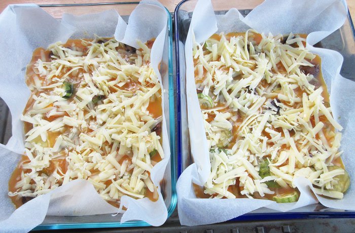 Once the veges were cooked, @sift666 had a look and we decided that was the right amount of veges for 4 meals. I split them between two large glass baking dishes that I’d lined with baking paper (easier than greasing it).
