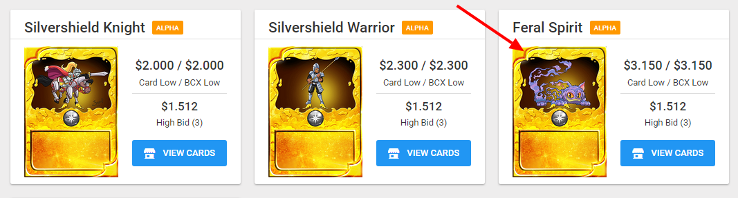 In this case I am looking to rent a gold foil Alpha Feral Spirit. This is a low mana card that I always use in my Life splinter in battles.