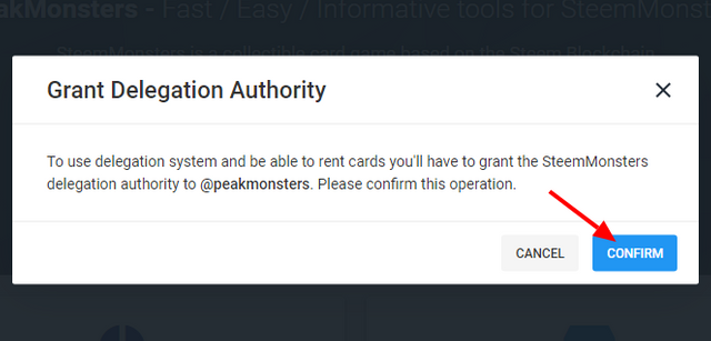 Once logged in you will need to make sure that you grant the SteemMonsters delegation authority to @peakmonsters.