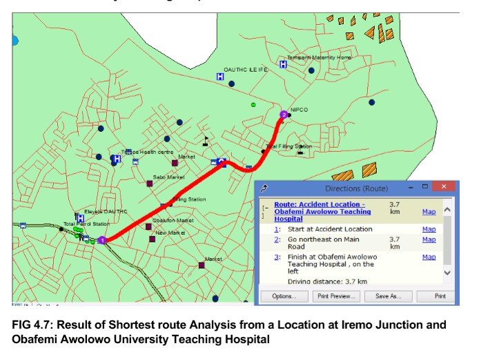 During my research work at Federal School of Surveying studying Geographic Information Systems, I was able to study how GIS could be used for emergency purposes such as Best Route , Shortest Route, Closest Facility and Service Area.