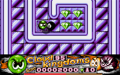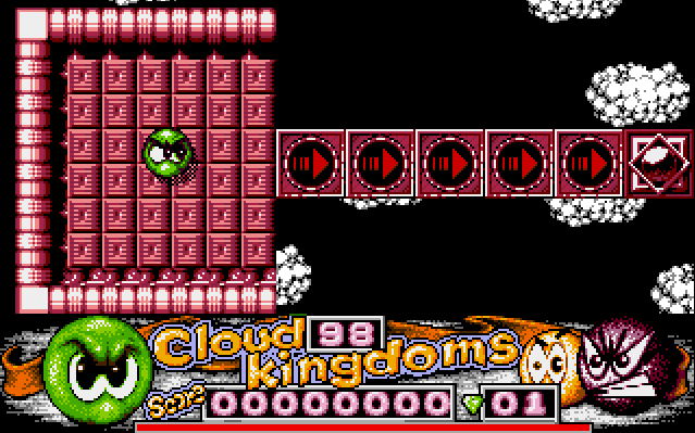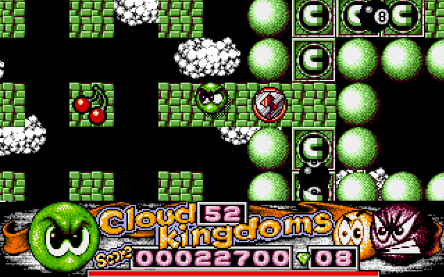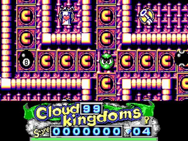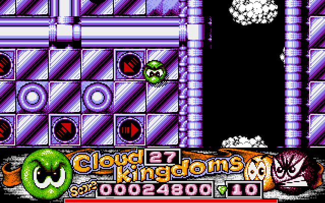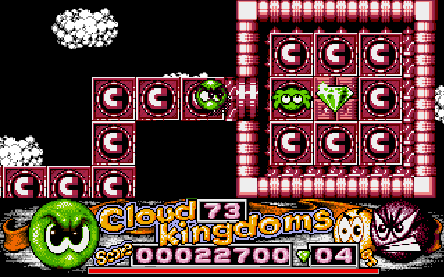'Cloud Kingdoms' again, on the Atari and Amiga, has pretty good graphics and a nice atmosphere. Its sound effects are serviceable and its intro 'and' pause music are both awesome. It 'is' a little lacking in music during game stages - but I personally don't mind this... and if memory serves well it can be toggled anyway.