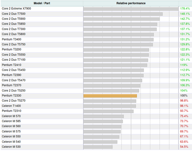 - CPU: Pentium T2330 @ 1.60GHz