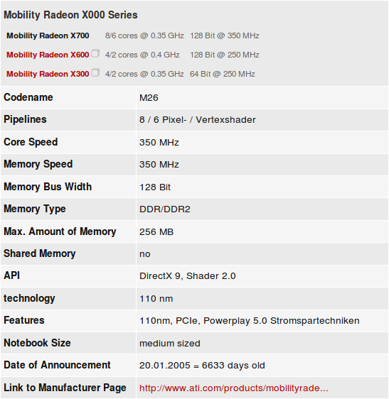 - Video: ATI Mobility Radeon x700 (128 MB)