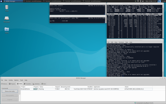 It's not quite yet too old to run BOINC projects though options are somewhat limited. Fewer and fewer projects support 32-bit CPUs. Of my normal projects, this machine has only received work from Einstein@Home and World Community Grid. You can see how it is doing at Free-DC or BoincStats.