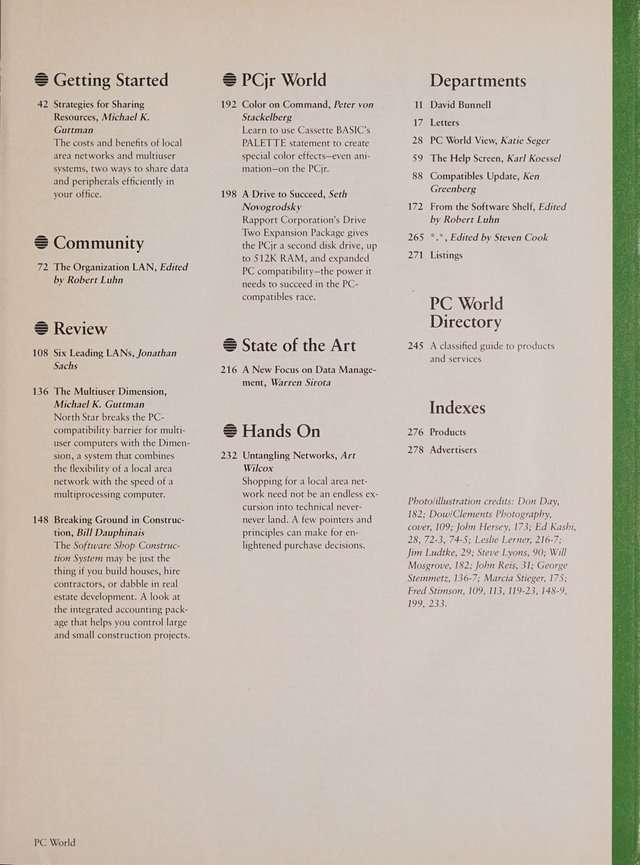 Table of Contents from the February 1985 issue of PC World (continued)