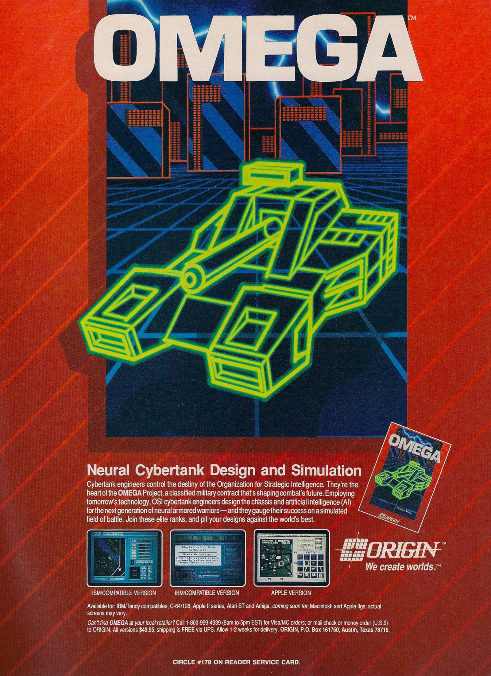 Omega was available for several platforms including the Amiga, Apple II, Apple IIgs, Atari ST, Commodore 64, DOS and Macintosh. The ad above mentions all of these with the Apple IIgs and Macintosh versions "coming soon". This game has never had a sequel or been remade but I think it would be an excellent candidate to remake today. I'm not aware of anything quite like it. If you want to give this one a try, any of the versions are pretty good and there really isn't a significant difference in terms of game play. The 16-bit versions will have somewhat better graphics in most cases but it isn't a big deal for this game.