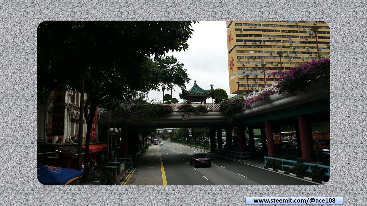 那里是一座大的人行天桥。上面还有中国式的凉亭。