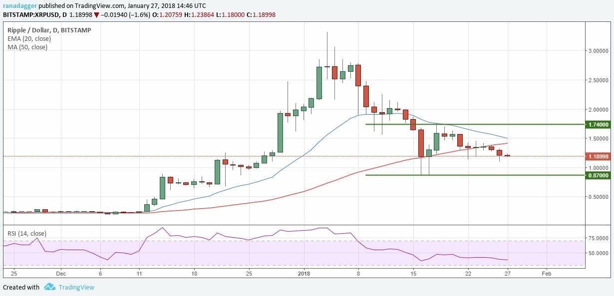 swell keeps on exchanging insdie the scope of $0.87 and $1.74 with a descending inclination. in the event that the digital currency separates of $1.09 levels a tumble to the lower end of the range is likely