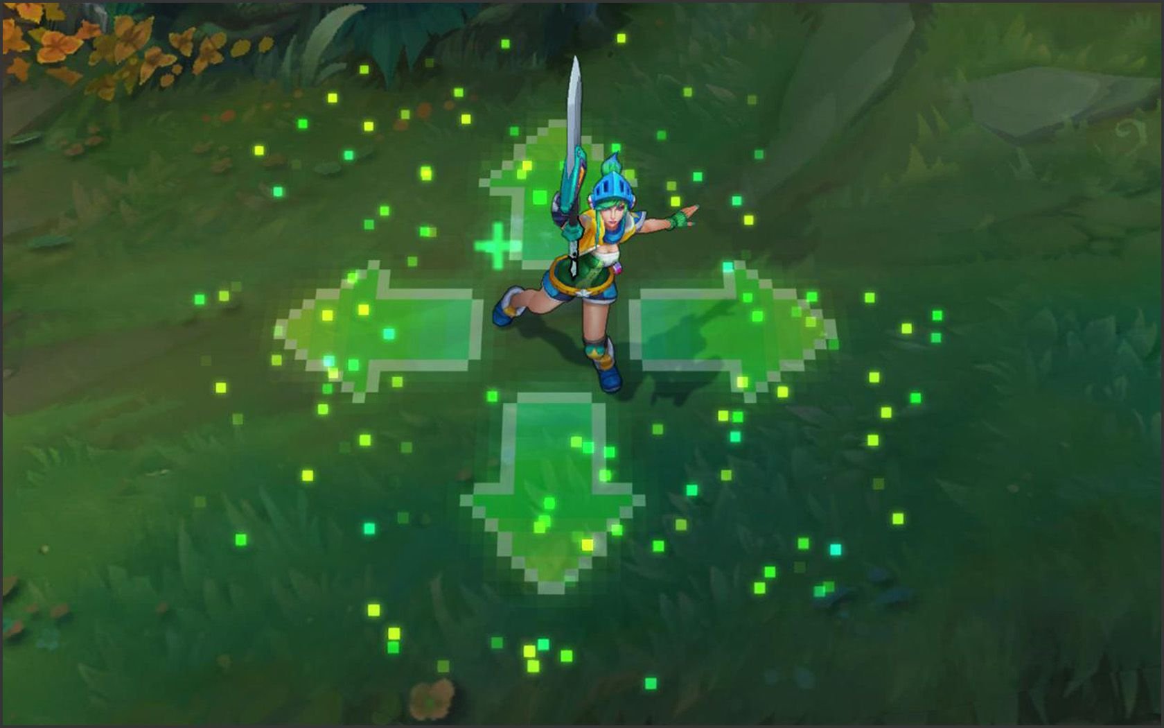 The Valor Shield is a dash in the direction the cursor is pointing and shields Riven for 1.5 seconds. Her shield is used to absorb damage in fights as well as close the distance on chasing enemies or possibly escaping them. It is her lowest cooldown ability and normally maxed 2nd after Q. The shield strength is not only determined by how many points you put in it but also her bonus AD. The Valor Shield grants its base stats as well as adding 100% of Riven's bonus AD.