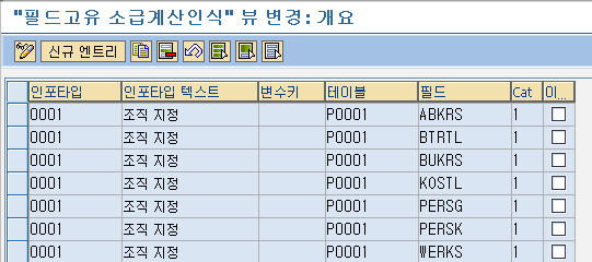 View Table V_T582A를 이용하면 해당 인포타입의 소급 계산에 대한 속성을 정의할 수 있다.