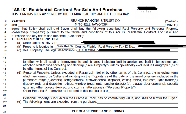 (Note: This is a Florida sales contract, there are subtle differences state to state)