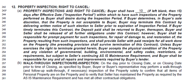 In the example above we did a 10-day inspection period, but you will see 7 days more often. 7 is the minimum I would do because it will take atleast a few days to get an inspector to the property.