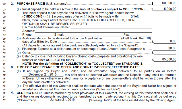 I will use parts of an actual sales contract from one of my offers as an example