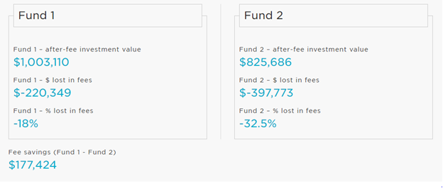 Fund 2 has a return of $177K less due to that "measly" 1% more in fees.
