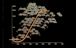With absolutely all of their needs met, the only limit to how quickly the mice could reproduce was their own physical endurance. Not surprisingly, the population very rapidly grew out of control, doubling every 55 days. But they couldn't go anywhere! Trapped within the confines of the mouse universe habitat, forced to simply endure the exponentially denser and denser living conditions.