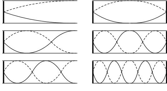 The diagrams above indicate that the resonant sound frequencies will be harmonics (set apart by certain multiples of wavelength fractions).
