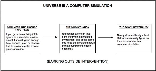 To recap: First, if the Simulation Hypothesis is true, then the Simulated Intelligence Hypothesis is likely also true—an evolving intelligence in a simulation will eventually become aware that they are in a simulation, barring extraordinary intervention.