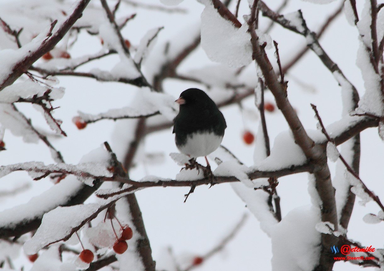 I always say that when the Dark-eyed Juncos return, cold weather is not that far behind. The Dark-eyed Juncos in this area always seem to return just before the first snow.