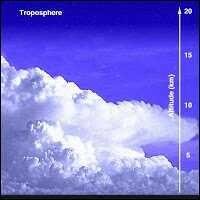 Di dalam troposfer terdapat tiga jenis awan, yaitu awan rendah (cumulus), yang tingginya antara 0 – 2 km; awan pertengahan (alto cumulus lenticularis), tingginya antara 2 – 6 km; serta awan tinggi (cirrus) yang tingginya antara 6 – 12 km.