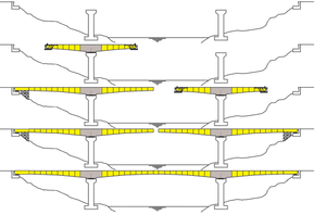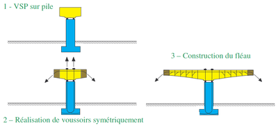 - This technique can be cast on the spot using a sliding formwork starting from an intermediate support by casting both sides in parallel to ensure balance, and can be achieved by prefabrication by laying the two elements on one side and the other in a symmetrical way to ensure balance.