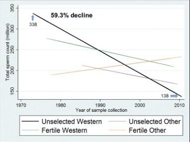 New analysis shows there's been a sharp decline in sperm count over the last 40 years among men in Australia and New Zealand, Europe and North America, with lead researcher Dr Levine, telling the BBC that if the trend continued humans could become extinct.