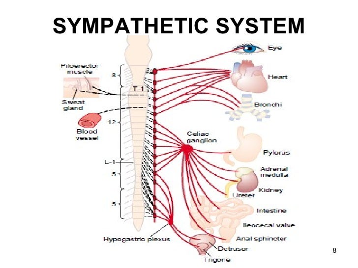- Departure area: the sympathetic system starts, as we have indicated, from the medulla, a nucleus that regulates a wide spectrum of functions unconscious for us, but vital for our existence.